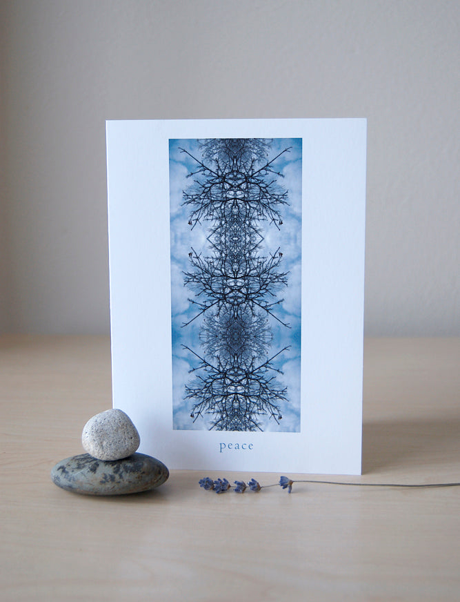 Holiday card with original photographic pattern of tree branches in winter. Hand-printed on 5 x 7 matte cardstock with envelope.